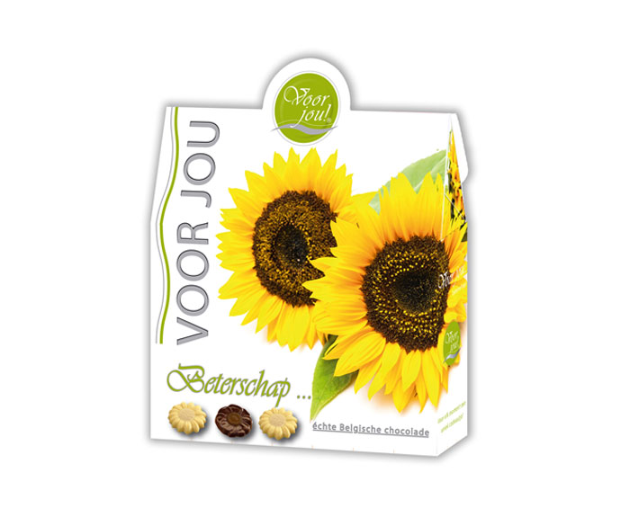 Het herstel zal sneller gaan met deze heerlijke bloemetjes gemaakt van Belgische chocolade in een vrolijk doosje!